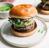 Layer brioche buns with aioli, burger patties, a few onions, a sprinkle of feta and a handful of microgreens.
